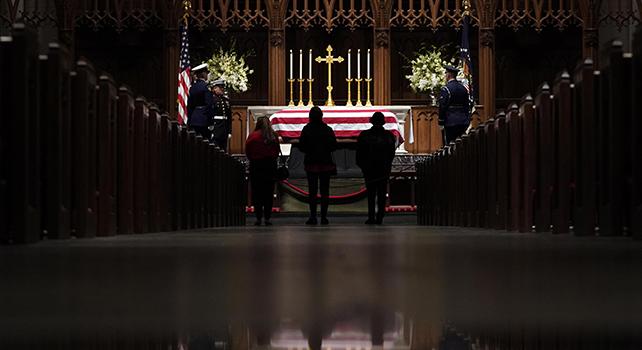 Il card. Daniel DiNardo, presidente della Conferenza episcopale, nei giorni scorsi aveva espresso a nome dei vescovi statunitensi le condoglianze per la morte del 41º Presidente degli Stati Uniti. “Ricordiamo con gratitudine – ha scritto il porporato - il Presidente George H.W. Bush, un grande uomo che ha speso la sua vita disinteressatamente al servizio del suo Paese”. “Mentre in pianto ci uniamo a tutta la nazione – ha continuato DiNardo – ricordiamo il suo impegno costante nel costruire ponti di pace e assicurare le libertà della nostra nazione. Egli è stato un marito, un padre e un patriarca che ha ispirato molti per la sua devozione”. Il cardinale assicura poi le sue preghiere “per il riposo dell’anima del Presidente” e per la famiglia e ricorda “la sua vita ben vissuta”, come un modello.