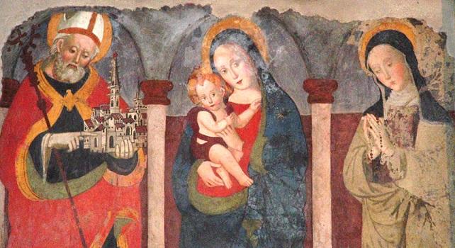 Dei pochi affreschi superstiti che un tempo decoravano tutte le pareti si conserva sulla parete destra nel primo altare una grande nicchia con la Gloria di Sant’Antonio da Padova attorno a cui con curioso impianto iconografico, entro rigogliosi tralci d’acanto sono narrati miracoli del santo. L’autore dell’affresco, Giovan Battista di Giovannofrio Iucciaroni di Norcia terminò l’opera nel 1501 alla viglia della festa del santo, come recita l’iscrizione sulla parte centrale dell’opera. A commissionare l’originale pittura fu un giurista, Francesco Gentili, personaggio di spicco della vita politica della Norcia di inizio XVI secolo. Lo stile del dipinto è fortemente influenzato dalla maniera peruginesca, allora particolarmente apprezzata a Norcia come testimonia l’attività della bottega degli Sparapane. Ma il gioiello più prezioso che era conservato in San Francesco e che è stato fortunatamente recuperato senza gravi danni dopo il sisma del 2016 è la splendida pala con l’Incoronazione della Vergine realizzata da Jacopo Siculo. La fastosa macchina lignea provvista ancora della ricca cornice originale decorata a foglia d’oro fu realizzata nel biennio 1539-1541. Fu fatta realizzare dai Frati Minori Osservanti del convento dell’Annunziata di Norcia a questo giovane artista che a Roma aveva potuto fare sua la lezione del grande Raffaello. Nell’impostazione dei personaggi nella pala è chiaro il riferimento iconografico ad un soggetto che in Umbria a partire dalla pala del Ghirlandaio a Narni ebbe molto successo. Lo stesso Raffaello lo riprende nella Pala Oddi, così come Giuliano Romano lo adotterà per la Pala di Monteluce. I colori morbidi, pastosi, l’eleganza del tratto e i dettagli raffinati degli abiti e del paesaggio qualificano quest’opera come uno dei maggiori capolavori che il Rinascimento ha lasciato in Valnerina. Certo che la bellezza sia riflesso del sorriso di Dio, mi auguro che presto tutto il mondo possa tornare ad ammirare la bellezza fiorita tra i Sibillini e le valli dove San Benedetto nacque.