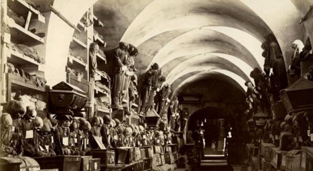 A Palermo, nei sotterranei del Convento dei Cappuccini e dell’attigua Chiesa della Madonna della Pace, si contano oltre ottomila scheletri e corpi mummificati, tra nicchie, casse e urne trasparenti. Furono tutti deposti tra il 1599 e il 1880 e appartengono a ricchi palermitani, professionisti, donne ed ecclesiastici.
