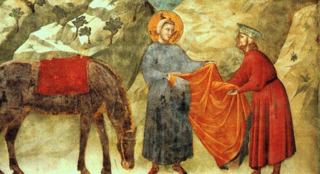 Perché il mantello di San Francesco è così celebre? Perché è il protagonista di un incontro - richiamato in un dipinto di Giotto - avvenuto forse nel 1204. Quello di Francesco con un povero a cui dà il proprio mantello.