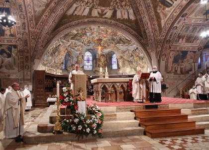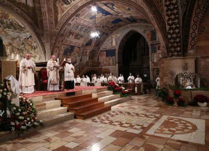 La statua della Madonna di Loreto portata in pellegrinaggio nella Basilica di San Francesco