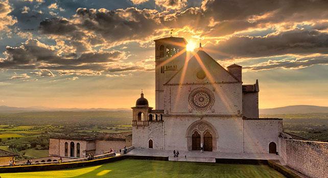 CONTE AD ASSISI IL 4 OTTOBRE PER SAN FRANCESCO PATRONO D'ITALIA. DALLA LOGGIA DEL SACRO CONVENTO IL MESSAGGIO ALLA NAZIONE NORME ACCREDITI STAMPA