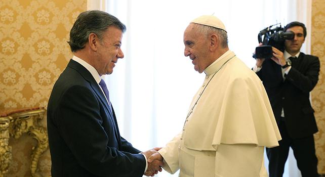 Santos al Papa: le pallottole il nostro passato, la pace è il nostro futuro