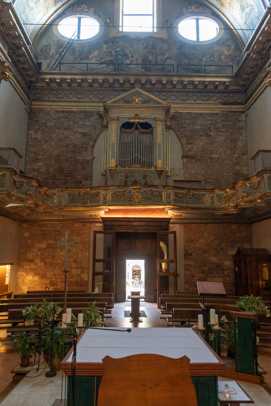 Il viaggio continua attraverso le chiese di Assisi intitolate a Maria. Questa volta entriamo in una delle chiese più belle di Assisi, Santa Maria sopra Minerva. “Non mi sarei mai saziato d'osservare la facciata e la geniale coerenza dell'artista ch'essa dimostra. A malincuore mi strappai a quella vista, proponendomi di richiamare l'attenzione di tutti gli architetti su questa fabbrica, in maniera che se ne possa avere una pianta esatta”. Queste parole, pura poesia, sono state scritte da Johann Wolfgang Goethe nel 1786, nel suo racconto “Viaggio in Italia”.