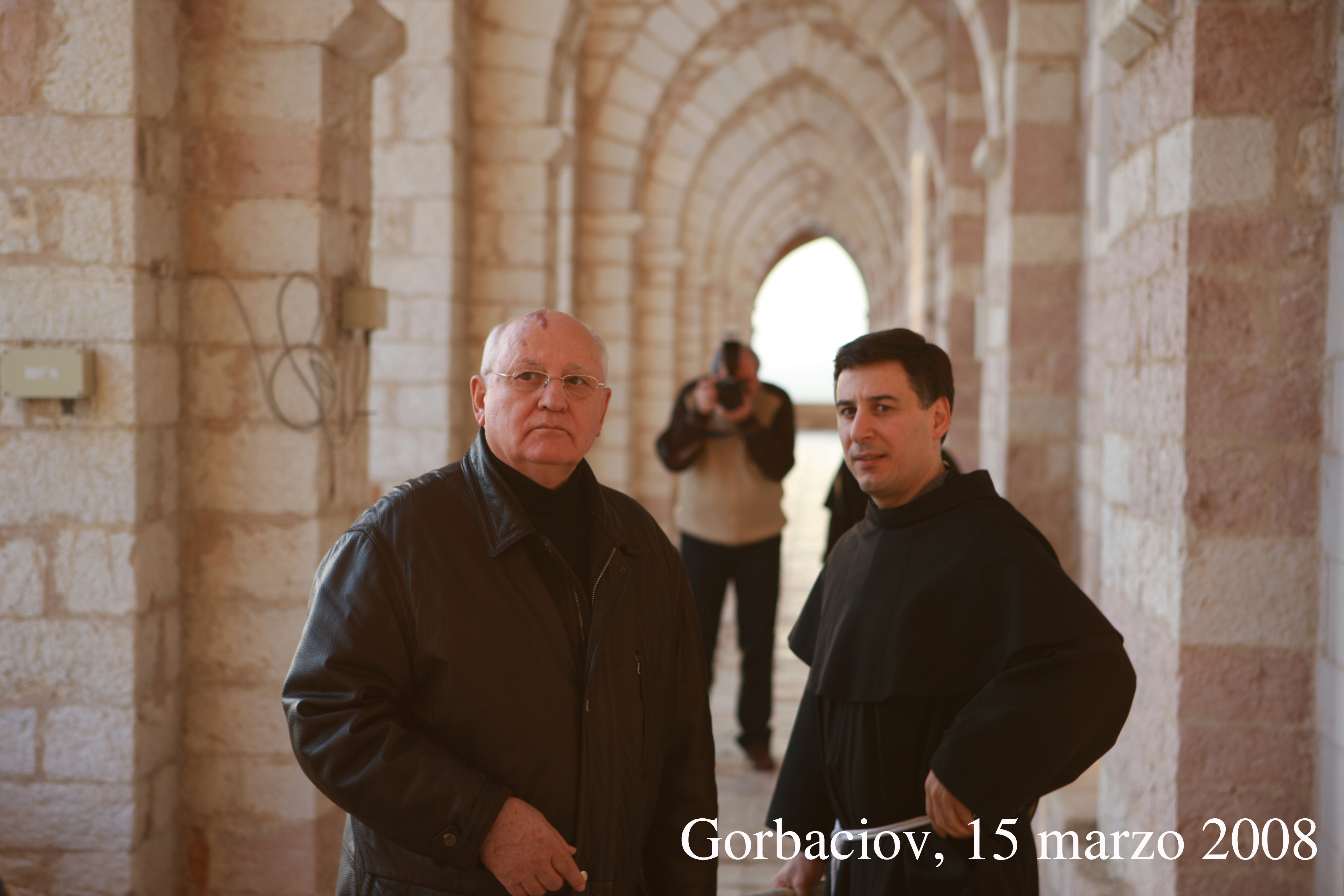 È arrivato in incognito ad Assisi come un pellegrino qualsiasi, Mikhail Gorbaciov, ed ha varcato il portone della Basilica di San Francesco. Qui mi viene subito da fare una riflessione: chissà quanti ‘personaggi’ entrano nella nostra Basilica senza dire niente a nessuno, senza farsi notare, come veri pellegrini, e poi escono dopo aver percorso in qualche metro uno straordinario viaggio di spiritualità – di fede per moltissimi – e di cultura!