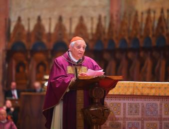 Celebrazione raccolta, commossa, intima e privata, ha segnato profondamente la comunità dei frati radunati attorno alle spoglie mortali del loro fondatore e padre. La celebrazione, breve e intensa, dopo l’ascolto del Vangelo della parabola del seme (Gv 12) - che è stata la chiave interpretativa teologico-spirituale di tutto l’evento dell’ostensione - e l’Ammonizione VI, è proseguita con la processione di tutti i frati presenti, la traslazione delle reliquie in cripta e si è conclusa con la benedizione solenne del presule.