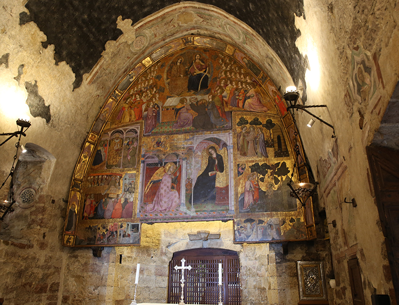 Quando si varca la soglia della chiesetta, siamo subito incantati dalla bellezza, dai colori e dalla luce della Tavola di Prete Ilario da Viterbo, dipinta nel 1393.