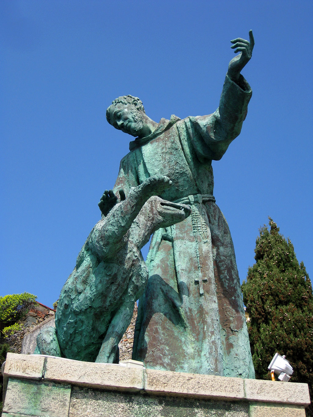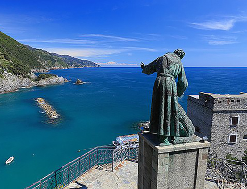 Al Poverello d’Assisi, in questo luogo, è dedicata una delle più belle e suggestive statue. E’, infatti, il monumento più fotografato delle Cinque Terre e ritrae il santo di Assisi con il famoso lupo di Gubbio. L’episodio è narrato nel capitolo XXI de “I Fioretti di San Francesco”: “Al tempo che san Francesco dimorava nella città d’Agobio, nel contado d’Agobio apparì un lupo grandissimo terribile e feroce, il quale non solamente divorava gli animali, ma eziandio gli uomini, intantochè tutti i cittadini istavano in gran paura, perocchè spesse volte s’appressava alla cittade, e tutti andavano armati quando uscivano della cittade, come se eglino andassero a combattere, e contuttociò non si poteano difendere da lui, chi in lui si scontrava solo; e per paura di questo lupo e’ vennero a tanto che nessuno era ardito d’uscire fuori della terra”.