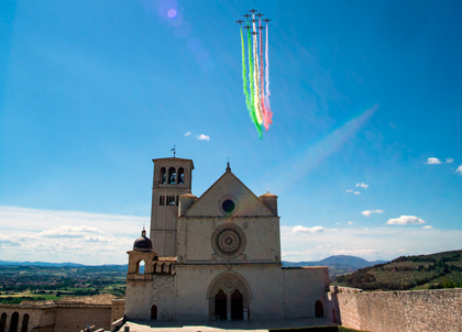 LE FRECCE TRICOLORI SORVOLANO LA BASILICA