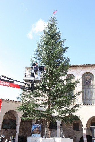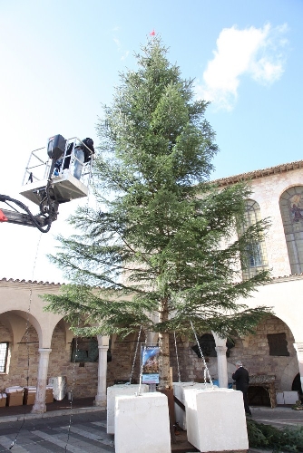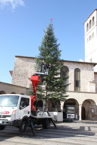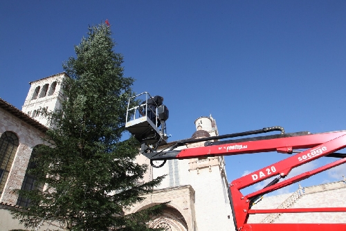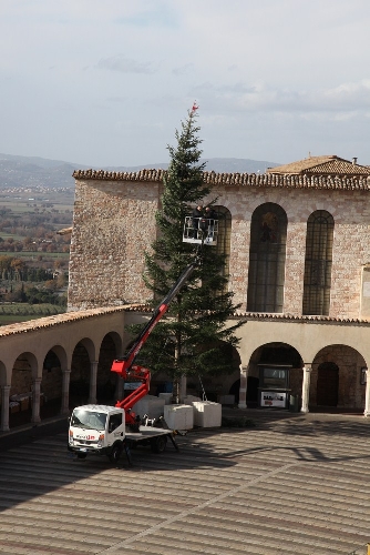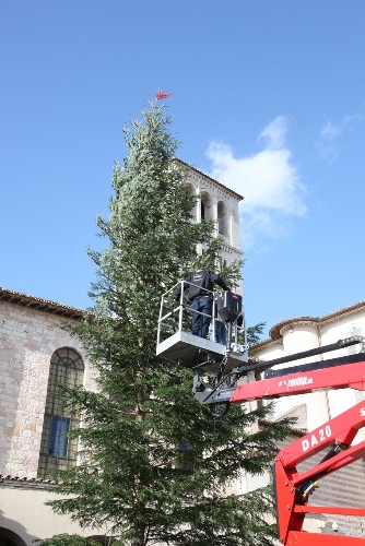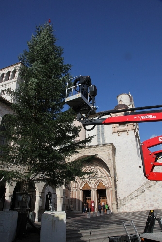 Albero di Natale 2011 - Installazione, piazza Basilica Inferiore di San Francesco