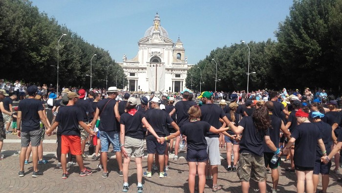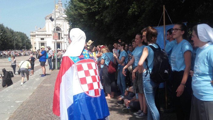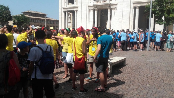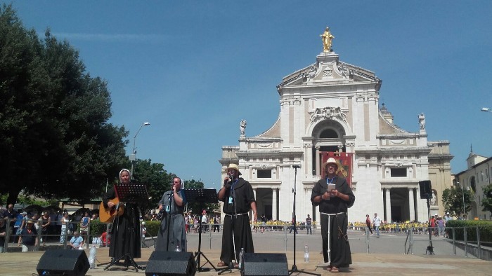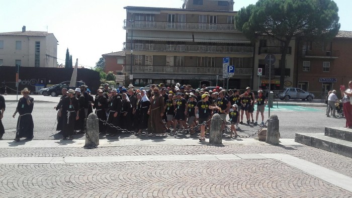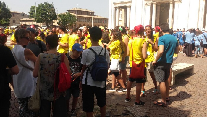 Arrivo dei giovani alla Porziuncola per il Perdono