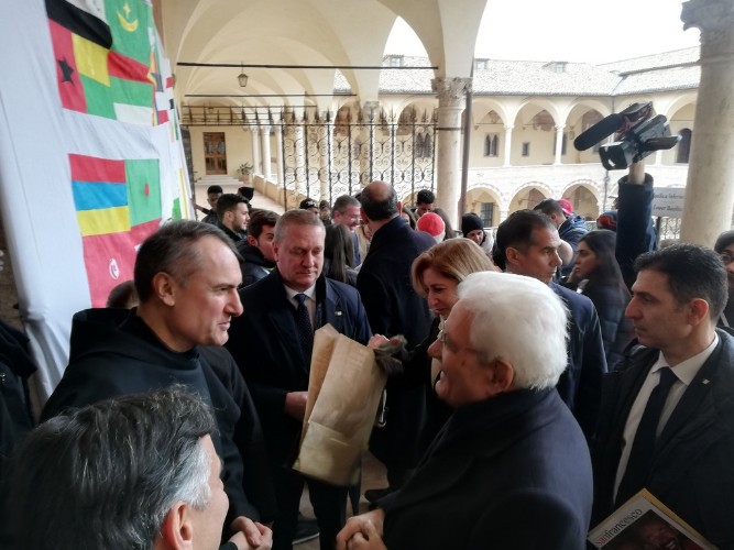 Assisi, consegnato al presidente Mattarella il foulard della solidarietà