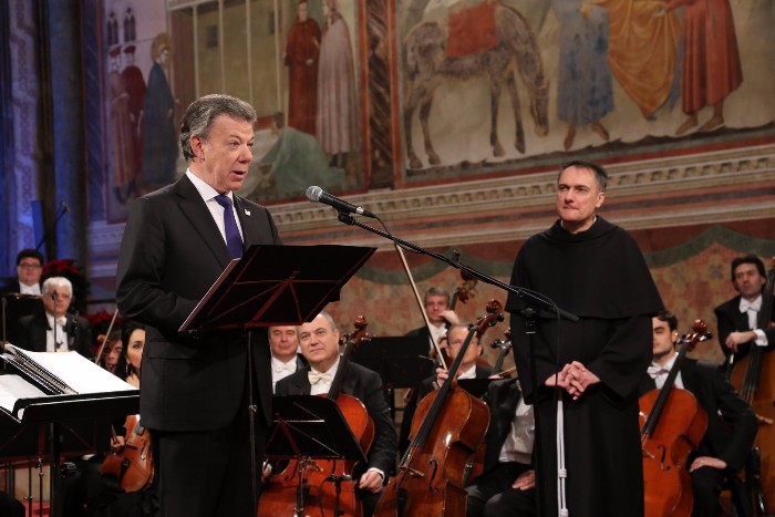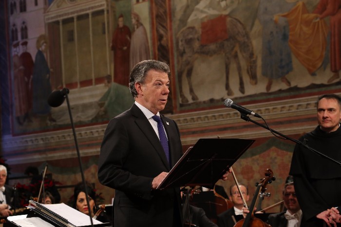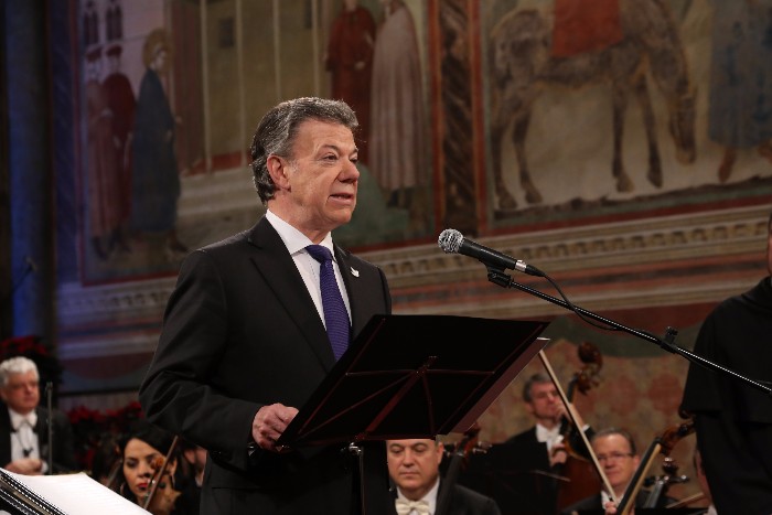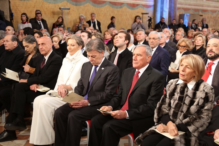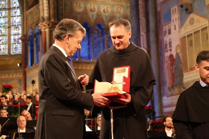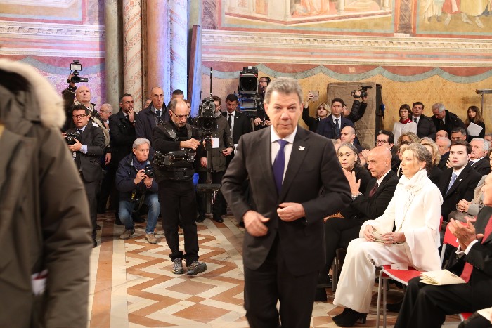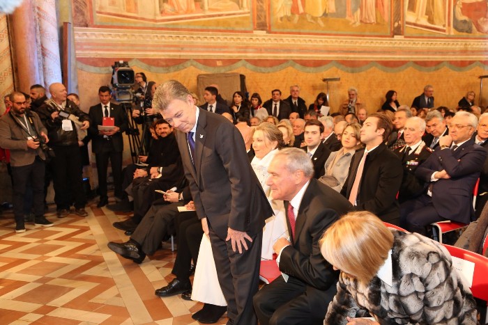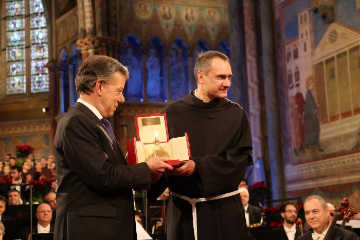 Consegna Lampada della Pace al Presidente colombiano Santos