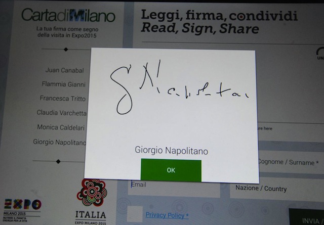 Giorgio Napolitano ad EXPO2015 con rivista San Francesco