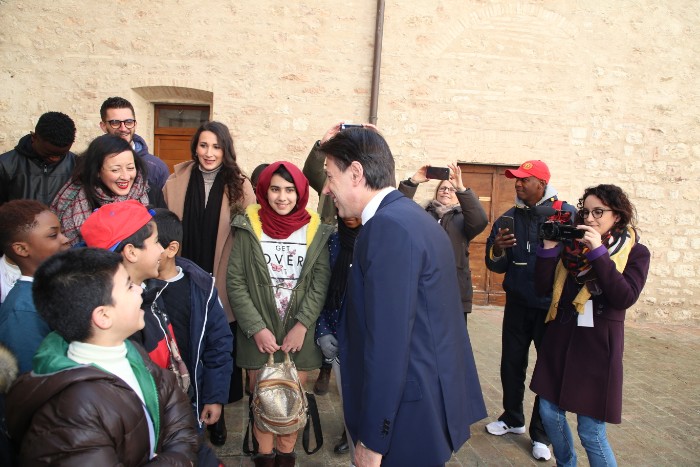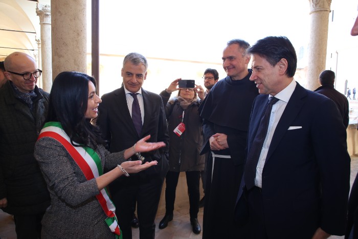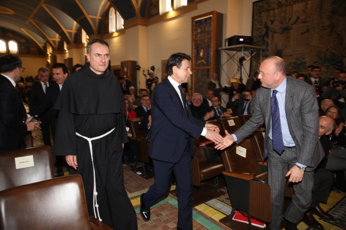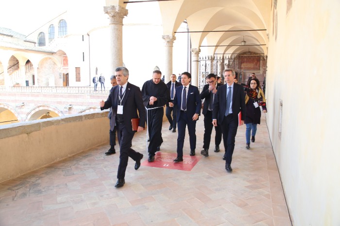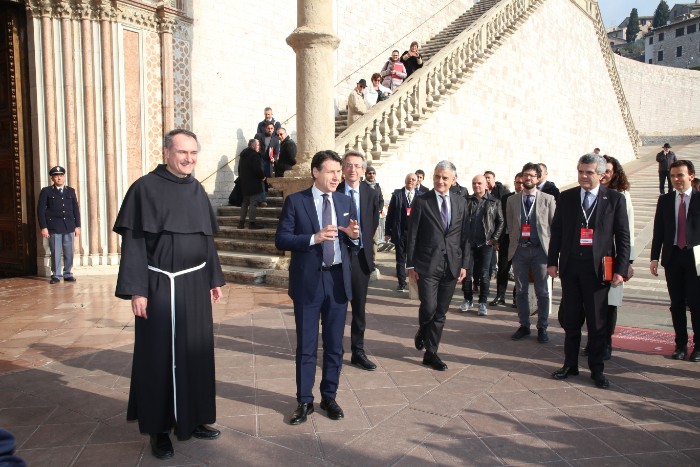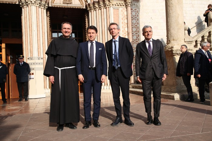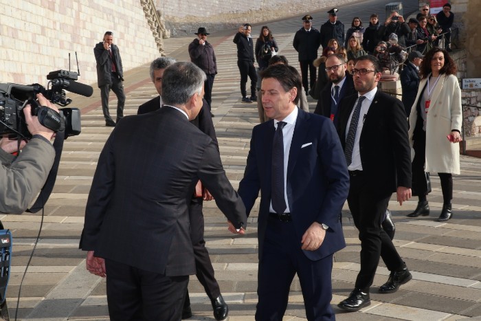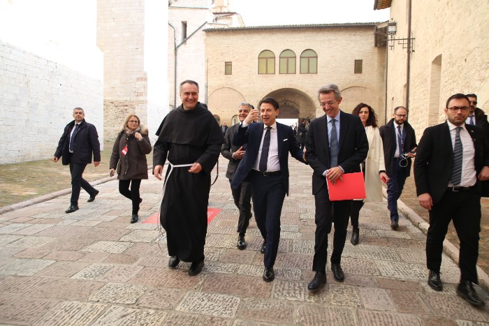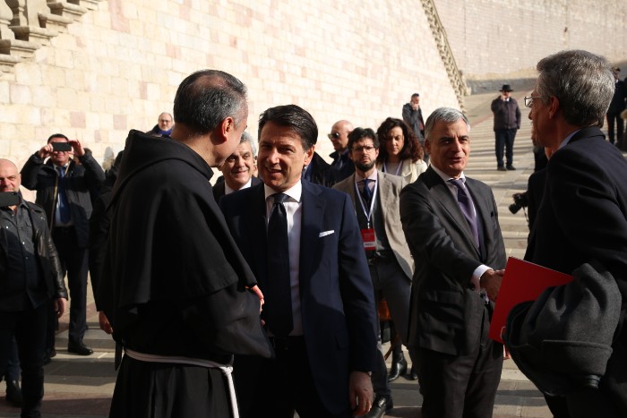 Il presidente del Consiglio Conte arriva al Sacro Convento per il Manifesto di Assisi