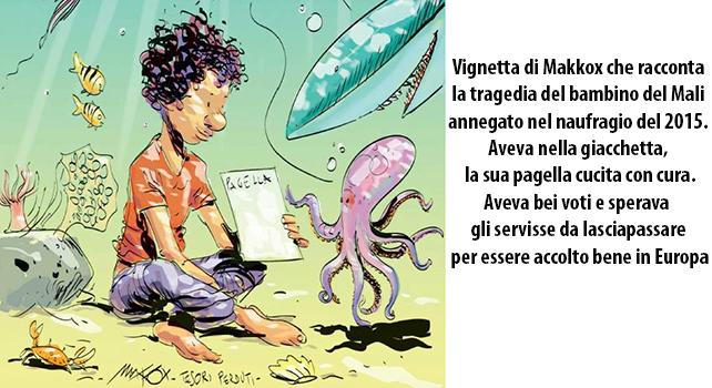 Papa in viaggio verso Panama con vignetta di Makkox su bambino annegato
