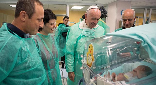 Papa Francesco tra i neonati in terapia intensiva IL VIDEO