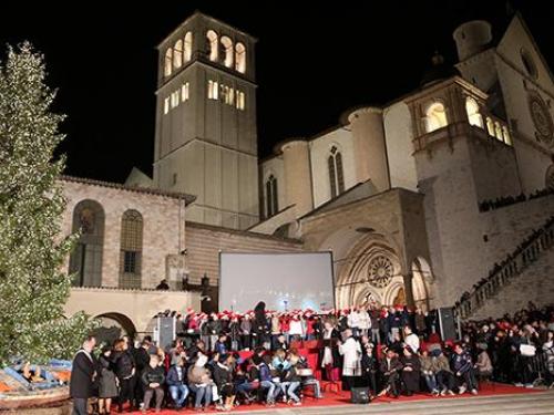Alle17.00 si terrà la Santa Messa nella Basilica Inferiore di san Francesco presieduta dal Prefetto del Dicastero per il Servizio dello Sviluppo Umano Integrale, Cardinale Peter Turkson. Al termine della celebrazione, alle 18.10, si terrà la cerimonia di accensione e benedizione aperta dal Custode del Sacro Convento di Assisi, padre Mauro Gambetti, durante la quale verranno consegnati dei doni alle famiglie più bisognose. Tra i presenti all'evento natalizio oltre 50 cittadini di Norcia e i profughi ospitati dalla Caritas Diocesana di Assisi.