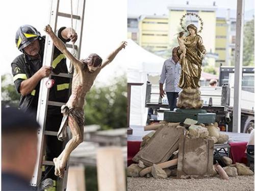Ai funerali la statua della Madonna sui sassi di Amatrice
