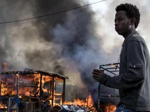 Nella bidonville in smantellamento sono entrati i servizi di ripulitura, per togliere tutto quello che resta di tende, baracche, bivacchi, bagagli e rifiuti, ma nella bidonville già dalla scorsa notte sono divampate più volte le fiamme. Il fuoco ha fatto esplodere almeno due bombole a gas e un siriano è rimasto leggermente ferito al timpano. I primi fuochi sono cominciati in prima serata ma tra mezzanotte e le 3 si sono intensificati.