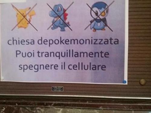 Gli "esorcisti" dei Pokemon liberano i luoghi sacri di Roma. Niente di blasfemo, solo un ironico cartello appeso nella bacheca di una parrocchia. "Chiesa depokemonizzata, puoi tranquillamente spegnere il cellulare", questa la scritta, con tanto di disegni dei personaggi più inseguiti dal popolo degli smartphone, comparsa questa mattina fuori dalla chiesa di Santa Maria Immacolata di Lourdes, in via S.Bernadette (quartiere Aurelio). Un cartello che, prendendo spunto da Pokemon Go, il gioco per cellulare che ha coinvolto milioni di persone in tutto il mondo, invita i fedeli a non usare il telefonino nel luogo di culto. (La Repubblica - di Laura Mari)