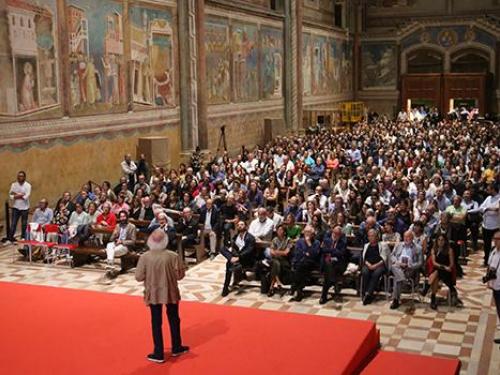 Christo incanta gli ospiti del Cortile di Francesco con le proprie opere. E' stata un successo la serata tenuta dall'artista dal titolo "Christo e Jeanne-Claude" con la conduzione di Andrea Montanari. L'iniziativa ha preso il via con un video che ha mostrato ai presenti le opere dell'artista che sono state spiegate al pubblico dallo stesso Christo.