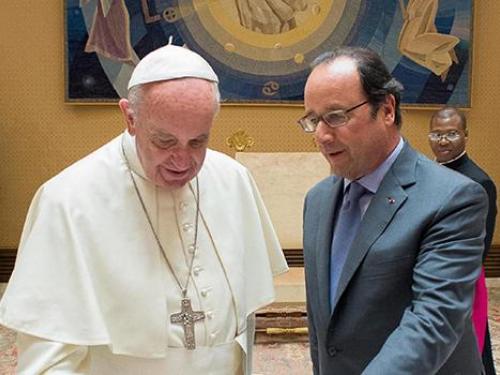 Papa Francesco ha ricevuto in udienza, nel pomeriggio, il presidente francese François Hollande. La visita, tenutasi in forma privata, è durata circa 40 minuti. Ad accompagnare Hollande c’erano tra gli altri, il ministro degli Interni francese, Bernard Cazeneuve, e l’ambasciatore francese presso la Santa Sede, Philippe Zeller. Hollande ha donato al Papa una porcellana di Sèvres, con lo stemma della Francia. Il Santo Padre, a sua volta, ha donato al capo di Stato francese una scultura in bronzo, copie dell’Enciclica Laudato si’ e delle esortazioni apostoliche Amoris laetitia ed Evangelii gaudium. Dopo l’udienza con il Pontefice, Hollande ha incontrato il segretario di Stato, cardinale Pietro Parolin.