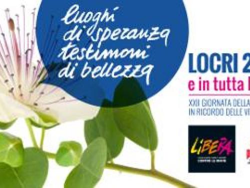 “Luoghi di speranza, testimoni di bellezza” è il tema che accompagnerà la giornata, la cui “piazza” principale sarà Locri, ma che si svolgerà, simultaneamente,in oltre 4000 luoghi diffusi in ogni parte d’Italia e in alcuni luoghi dell’Europa e dell’ America Latina, dove la Giornata verrà vissuta attraverso la lettura dei nomi delle vittime con momenti di riflessione e approfondimento.