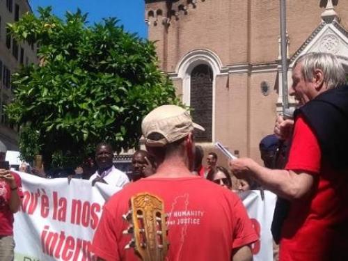 Uno striscione campeggia ben evidente nella piccola piazza davanti la chiesa intitolata a Maria Immacolata e a San Giovanni Berchmans: “Dov’è la nostra protezione internazionale?”. E’ accanto al famoso sacerdote, è lo striscione che un gruppo di immigrati stringe forte fra le mani. Lo stringe forte, come la stessa speranza di vedere riconosciuti i “naturali” diritti di dignità. “In nome di tanti italiani onesti io vi chiedo perdono”, accorato, Don Luigi Ciotti si rivolge a loro. “Loro”, sono i centoventi rifugiati in Via Scorticabove, nel popoloso e popolare quartiere Don Basilio di Roma. I rifugiati sono stati cacciati da una cooperativa a Roma, senza preavviso. Ora dormono in strada e non è mancata da parte di molti cittadini la solidarietà.