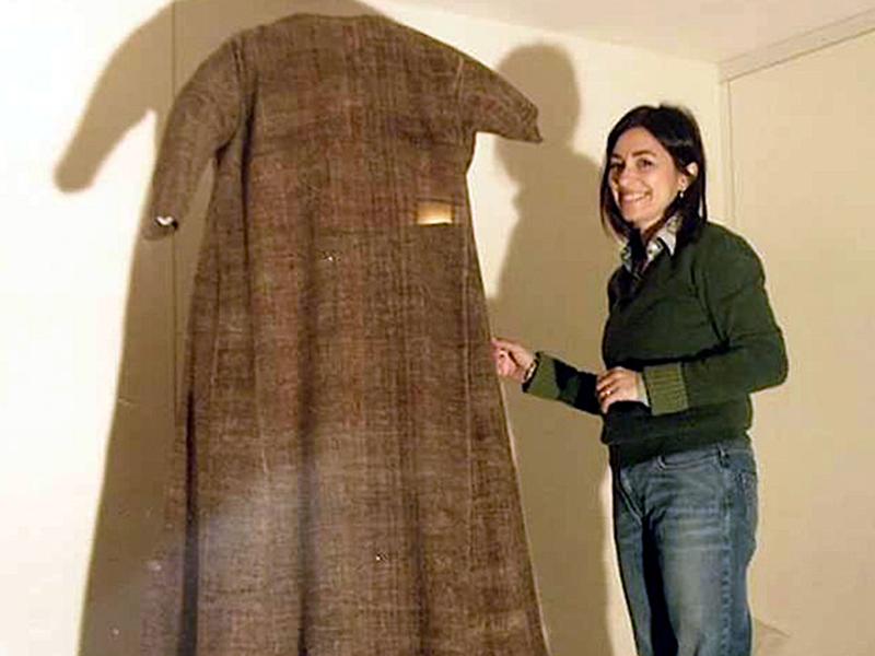 Bonaventura da Bagnoregio descrive Francesco, che con un mattone o qualcosa che poteva lasciare un segno, disegna una croce, fa un segno su questa stoffa e ne fa un abito atto a rivestire un uomo povero e crocifisso. Fa questa specie di confezione e cuce il mantello del Vescovo Guido su questa sua prima veste. Oggi così possiamo avvicinarci alla ricostruzione dell’accaduto, c’è una coerenza tra le fibre del mantello del Vescovo Guido, a seguito di indagini scientifiche approfondite su microframmenti di fibre prelevate sotto le grossolane cuciture presenti sull’abito penitenziale di Francesco. Abbiamo quindi la possibilità di ricomporre frammenti di storia come un puzzle che altri nel futuro porteranno avanti, completeranno.