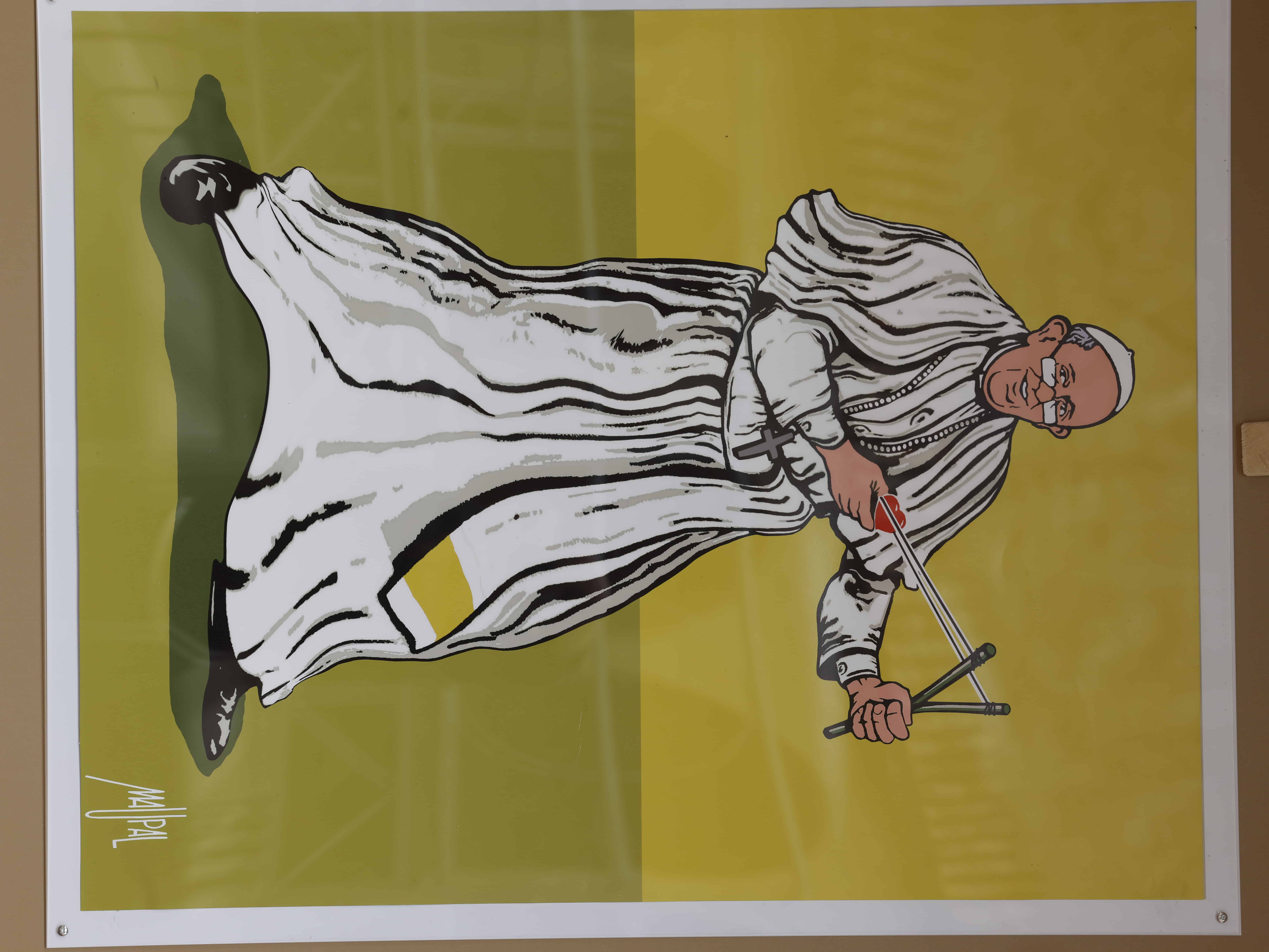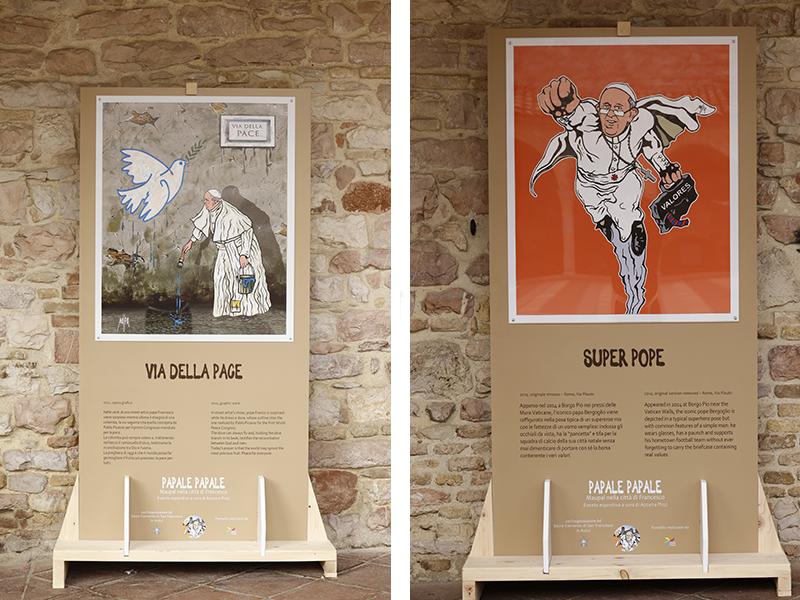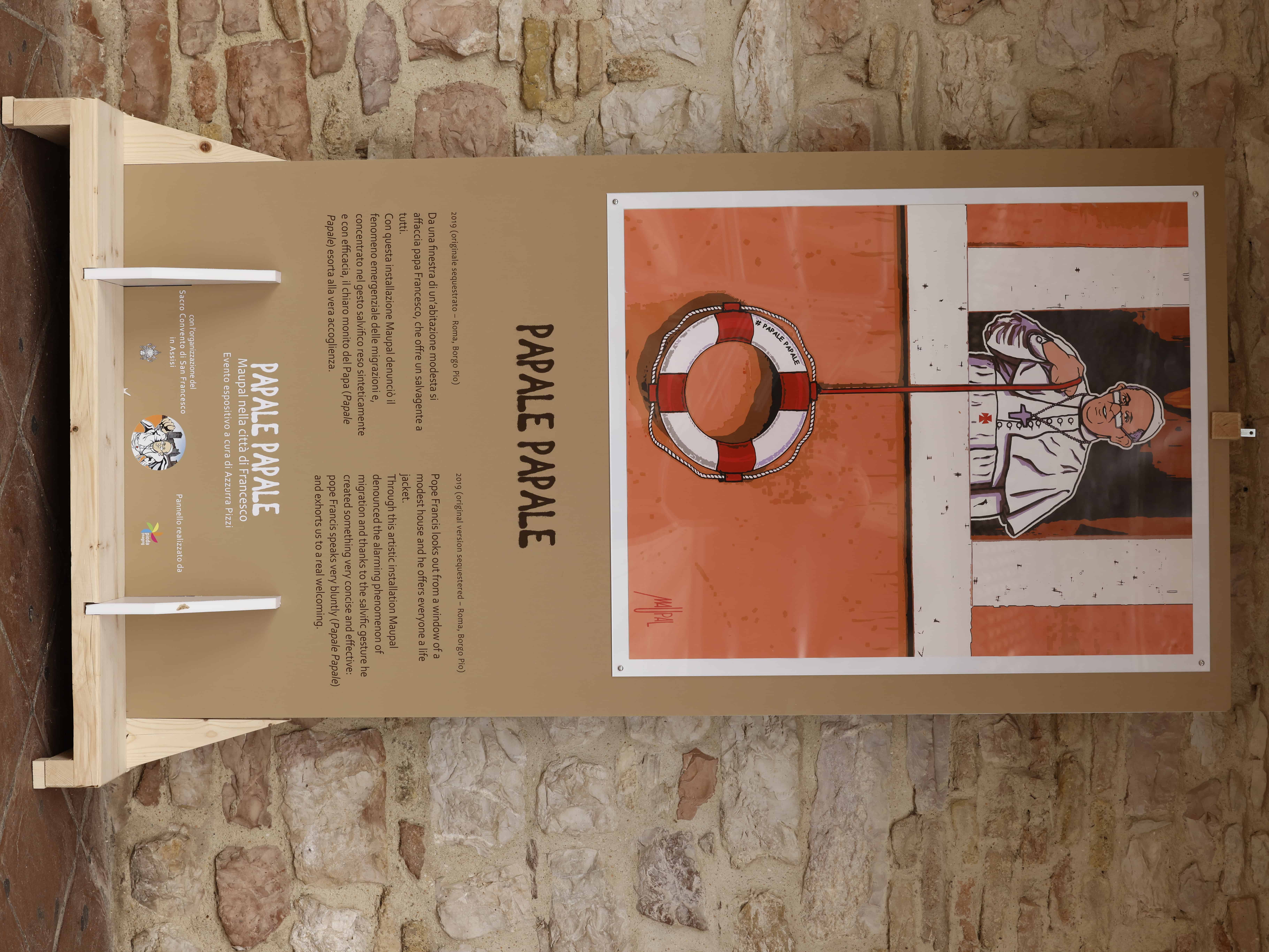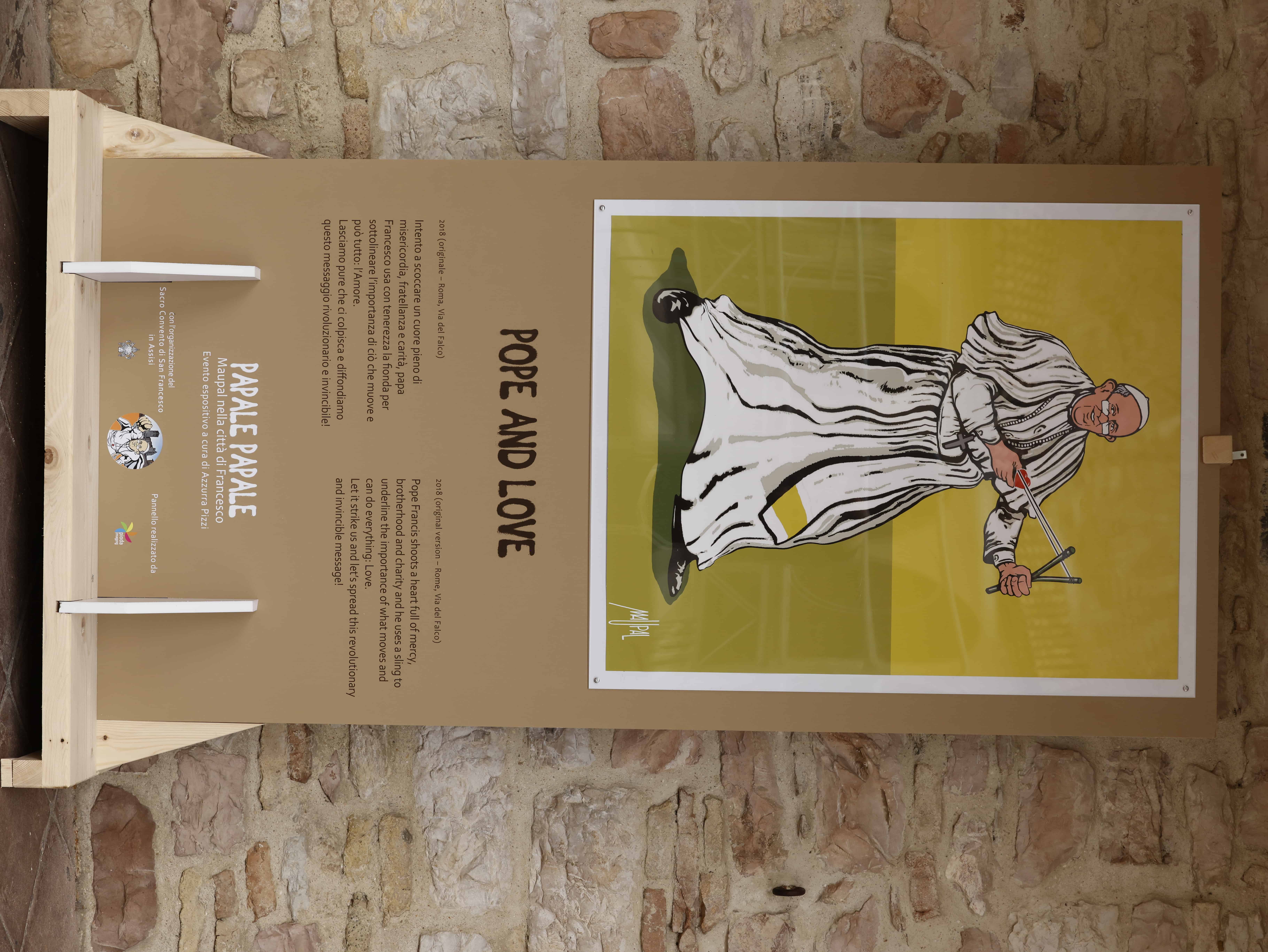 È stata presentata, nella Sala Stampa del Sacro Convento di Assisi, l’esposizione artistica di Maupal dal titolo “Papale Papale”. La mostra, composta da nove riproduzioni tra le più significative dell’urban artist Mauro Pallotta sulla figura di Papa Francesco, sarà visibile fino al 6 novembre nel portico meridionale della piazza inferiore della Basilica di San Francesco.