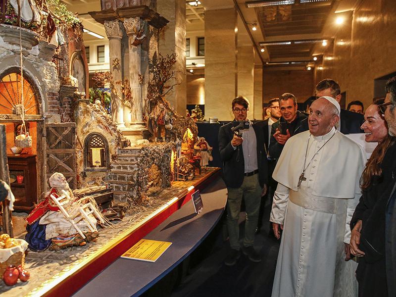 Da Greccio al cuore della cristianità. L’omaggio di Papa Francesco alla mostra dei “100 presepi in Vaticano” è all'insegna della sorpresa ma è anche un modo per sottolineare, come ribadito nella Lettera Apostolica Admirabile signum, l’importanza proprio di quel segno che da duemila anni parla al mondo. Giunto intorno alle 16.10 nella Sala Pio X, in via dell’Ospedale 1, il Pontefice, accompagnato da monsignor Rino Fisichella, presidente del Pontificio Consiglio per la Promozione della Nuova Evangelizzazione, ha ammirato gli oltre 130 presepi che provengono da circa 30 Paesi del mondo.