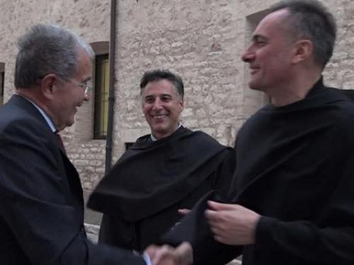 Prodi, che allora era il presidente del Consiglio dei ministri, e' giunto ad Assisi per partecipare ad uno degli incontri del Cortile di Francesco insieme al presidente della Cei, cardinale Gualtiero Bassetti. Accompagnato dalla moglie Flavia, dal Custode del Sacro Convento, Padre Mauro Gambetti, e da Padre Enzo Fortunato, direttore della rivista San Francesco, l’ex Presidente del Consiglio si è inginocchiato di fronte alla tomba di San Francesco e ha recitato il Padre Nostro.