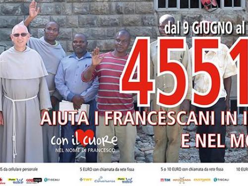 Dopo il successo della serata benefica "Con il Cuore, nel nome di Francesco", condotta da Carlo Conti e trasmessa in diretta su Rai1, dal sagrato della Basilica di San Francesco d'Assisi continua la gara di solidarietà dei frati di Assisi per i terremotati e le mense francescane in Italia. Da quindici anni l’evento aiuta e sostiene chi soffre e chi si trova in difficoltà. La manifestazione che unisce musica, cultura e spiritualità ha visto la partecipazione di artisti della musica italiana e testimoni di solidarietà e fraternità. Ogni anno i frati del Sacro Convento di Assisi organizzano una maratona di beneficenza e chiedono a tutti gli uomini di buona volontà un aiuto per le popolazioni più disagiate al mondo.