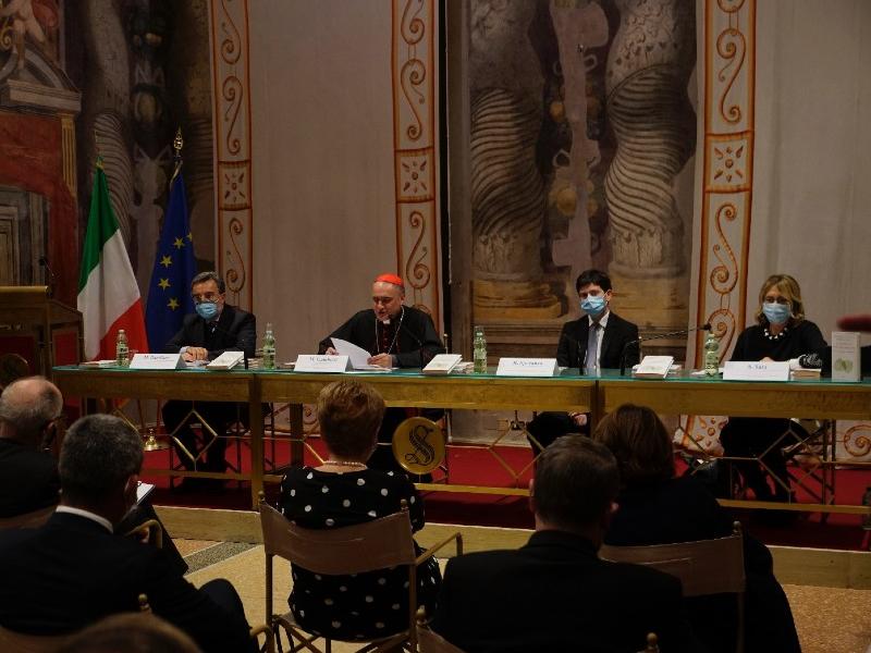 “L’occasione mi è propizia per spiegare in anteprima un sogno che sta per concretizzarsi intorno alla Basilica di San Pietro e al suo colonnato che simbolicamente abbraccia il mondo ed è la soglia di chi ricerca il vero, il bello e il giusto. Un sogno coltivato fin da Assisi e ora condiviso in particolar modo con padre Francesco Occhetta, mio stretto collaboratore, e con alcuni Dicasteri vaticani che trattano temi afferenti i nostri obiettivi. Attraverso una Fondazione che sarà chiamata Fratelli Tutti, vorremmo contribuire a progettare e a realizzare un “nuovo umanesimo”, promuovendo in modo sinodale l’apporto di ciascuno secondo i propri ambiti di impegno e di competenza”. Con queste parole, il cardinale Mauro Gambetti, arciprete della basilica di San Pietro, ha ufficializzato stasera in una sala del Senato alla presenza del ministro della Salute, Roberto Speranza, il lancio della nuova fondazione vaticana intitolata all’ultima enciclica di Papa Francesco.