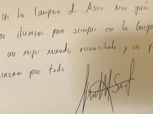 Questo il messaggio scritto dal presidente colombiano Santos sul libro delle presenze della basilica di san Francesco: