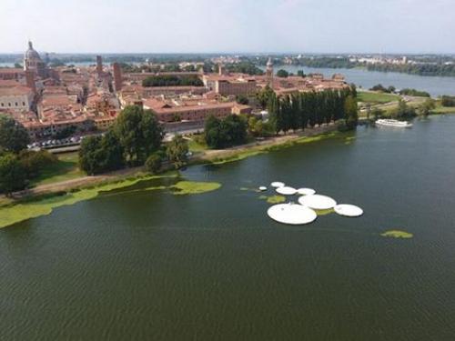 Sul Lago Inferiore di Mantova è apparsa una serie di bianche isole galleggianti che ricordano i fiori di loto e che nei prossimi mesi ospiteranno concerti, conferenze, proiezioni e spettacoli teatrali dedicati al rapporto della città con l’acqua: è l’Arcipelago di Ocno, un’installazione dell’architetto Joseph Grima.