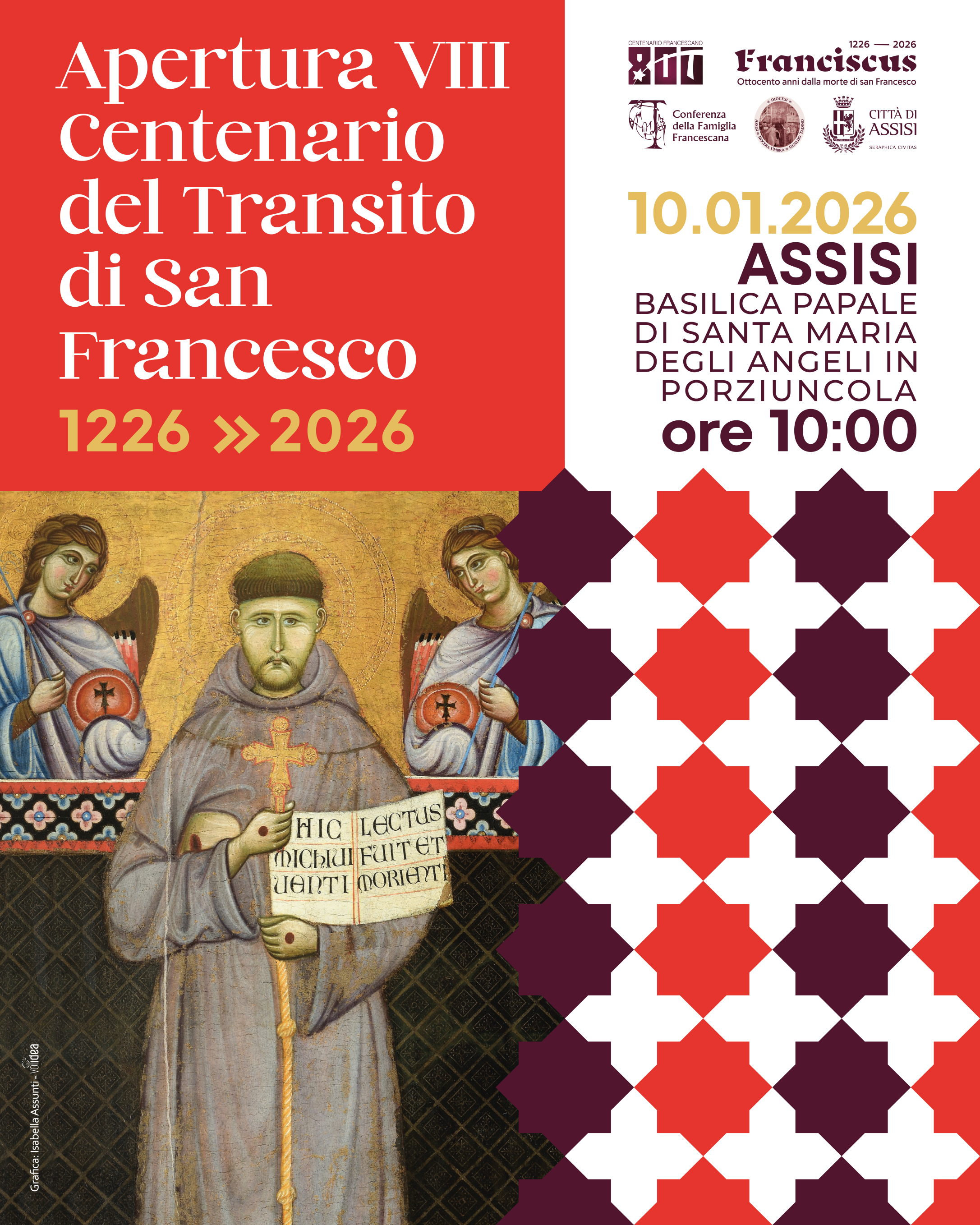Il 10 gennaio 2026, alle ore 10, la Basilica di Santa Maria degli Angeli in Porziuncola diverrà il centro delle solenni celebrazioni per l’VIII Centenario del Transito di San Francesco di Assisi 1226/2026.