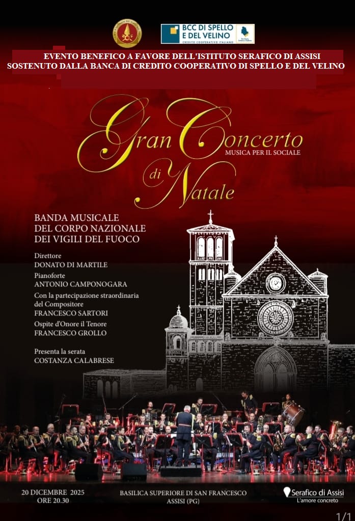 In occasione delle festività natalizie, il 20 dicembre 2025, nella suggestiva cornice della chiesa superiore della Basilica di San Francesco, si terrà il “Gran Concerto di Natale – Musica per il sociale”, con l’esibizione della Banda Musicale del Corpo Nazionale dei Vigili del Fuoco che vedrà, inoltre, la presenza di artisti di fama nazionale e internazionale tra cui il pianista Antonio Camponogara, il tenore Francesco Grollo e il compositore Francesco Sartori.