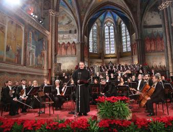 La cerimonia è stata trasmessa in diretta streaming sul sito sanfrancesco.org e sulla pagina Facebook ufficiale dedicata a San Francesco. È giunto alla XXXIV edizione il tradizionale Concerto di Natale dei frati di Assisi che come ogni anno verrà trasmesso su Rai1 il 25 dicembre dopo il messaggio Urbi et Orbi di Papa Francesco. L’evento, diretto dal Maestro Steven Mercurio, nella Basilica Superiore di San Francesco, vede la partecipazione di: Massimo Ranieri, Anna Tifu al violino, Marco Braito ed Ercole Ceretta alle trombe. Accompagno gli artisti nei tradizionali canti natalizi l'Orchestra sinfonica nazionale della RAI, il coro di voci bianche “I Piccoli Musici”, diretti dal Maestro Mario Mora, e il coro Maschile del “Coenobium Vocale”, diretti dal Maestro Maria Dal Bianco.