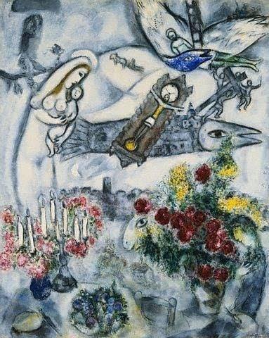 Marc Chagall e il suo inconfondibile tratto, la famosa predilezione per il colore blu. La sua Natività è stata realizzata agli inizi del secolo scorso, a Parigi, dove l’artista ebreo, di origine bielorussa, incontra e scopre tutto il repertorio di immagini cristiane, raccolto per la maggior parte nei musei e nelle chiese: è così che incontra l’“ebreo” Cristo e tutta la tradizione figurativa cristiana. Lui, la fonde, con quella d’origine, l’ebraica, offrendoci opere d’arte sacra dal sapore del tutto inedito: le sue tele si riempiono di simboli attinti - con libertà creativa onirica - dalla tradizione iconografica narrativa cristiana e da quella simbolista ebraica: c’è tutto in questo quadro, dal candelabro della festa ebraica dello Hannukkah alla Vergine Maria che splende nella sua purezza bianca; c’è anche la Croce di Cristo che si vede in fondo, preannuncio della missione salvifica del Salvatore; colpisce, in basso a destra, il ritratto dello stesso artista immerso tra rose rosse e fiori gialli.