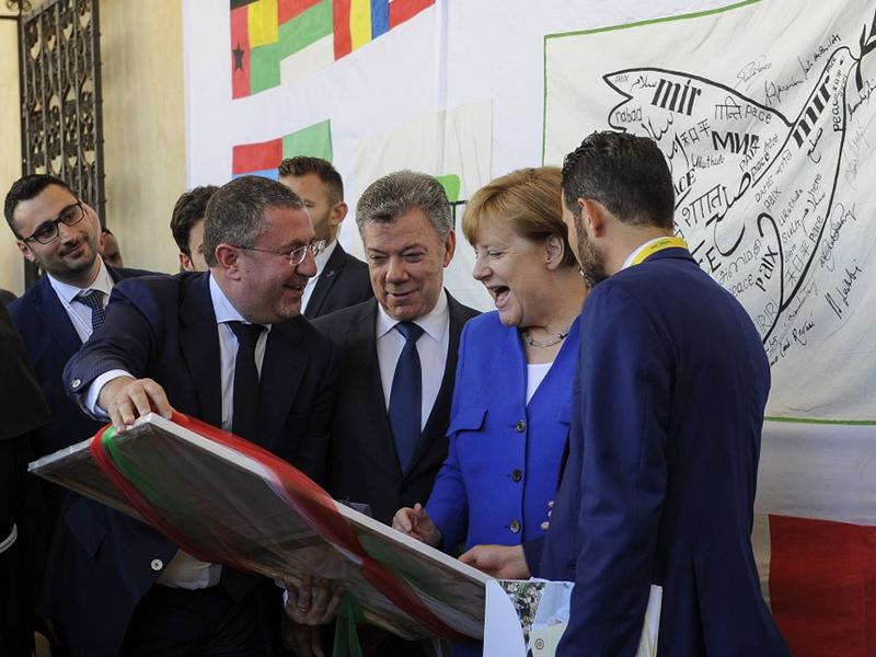 "Uno striscione creato per la Pasqua del 2016 - ha spiegato il presidente di Auxilium, Angelo Chiorazzo - portato in Piazza San Pietro e firmato dal Papa quella sera stessa". Una firma che, di fatto, ha inaugurato quella che si è consolidata come una vera e propria "usanza" per chiunque sarebbe successivamente venuto in contatto con la cooperativa: "Tutti gli ospiti che abbiamo incontrato, tra coloro che sono venuti nei nostri centri o ad Assisi, in occasione dell'incontro con il Sacro Convento, hanno firmato questo striscione. Ora si possono leggere le firme di Angela Merkel, del cardinal Angelo Becciu, dell'ex presidente colombiano Manuel Santos, del ministro dell'immigrazione canadese, anch'egli un rifugiato, del re Abd Allah di Giordania e di moltissime altre personalità che hanno avuto occasione di conoscere i nostri centri di accoglienza, tra i quali anche don Aldo Buonaiuto quando venne a Mondo migliore".