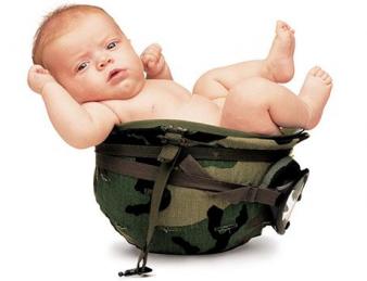Ma siccome le guerre non finiscono mai, i bambini continuano a nascere negli elmetti.