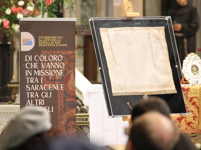 Per celebrare questo anniversario di grande valore storico, carismatico e spirituale, i membri della grande famiglia francescana – frati, suore, laici appartenenti ai tre Ordini fondati da Francesco - si sono ritrovati alla basilica di San Giovanni in Laterano a Roma per una liturgia che sarà presieduta dal cardinale Angelo De Donatis, arciprete della basilica e vicario del Papa per la diocesi di Roma. Nel corso della liturgia De Donatis ha letto una lettera di Francesco dedicata agli 800 anni di Regola bollata, in cui il pontefice ha chiesto ai francescani di andare «incontro al mondo là dove molti fratelli e sorelle attendono di essere consolati, amati e curati».