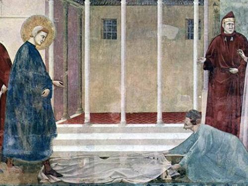 Nelle prime due terzine di episodi sanfrancescani di Giotto nella Chiesa superiore, il mantello è in assoluto l’elemento simbolico chiave del messaggio inviato dalle stesse. Si tratta del mantello emblema di onore futuro (I episodio), dono di ricchezza condivisa in solidarietà (II episodio), rivestimento di una nudità pubblicamente offesa (V episodio).