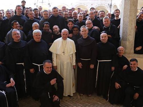 L'intera fraternità si stringe attorno al Papa, nel quarto anniversario dell’elezione al soglio pontificio, e ha ricordato i tre pellegrinaggi che ha vissuto in Assisi durante questi quattro anni. Indimenticabili e animati da una sintesi sorprendente le sue parola sulla scelta del nome che di fatto rappresenta anche l'azione pastorale in chiave francescana: "Ho scelto il nome Francesco perché uomo che ama i poveri, uomo della pace, uomo che ama e custodisce il creato ".