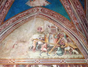 Ci troviamo immersi nel cammino verso la Pasqua che la Chiesa chiama Quaresima. Abbiamo pensato di porre al centro due realtà che richiamano il cammino cristiano e il cammino francescano: il Golgota e La Verna, Cristo e Francesco, il legno e la pietra. Sulla strada che porta ancora oggi il nome di Via Dolorosa c’è un corteo che avanza con un uomo che porta sulle spalle il patibulum, cioè l’asse trasversale della croce. Il legno verticale, asse portante attendeva l’altro legno. La cultura del tempo, ci ricorda Paolo, diceva “Maledetto chi pende dal legno”. Sappiamo che quella maledizione si è trasformata in benedizione per noi.