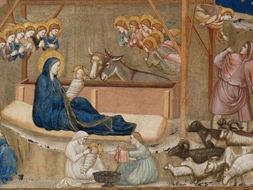 Quest’anno Papa Francesco ha scelto per gli auguri natalizi l’immagine della natività di Giotto affrescata nel transetto destro della Basilica inferiore di Assisi nel 1313 circa. L’affermazione biblica che vi appone dietro è quella di Isaia 9,5: ci è stato dato un figlio... il Principe della pace.
