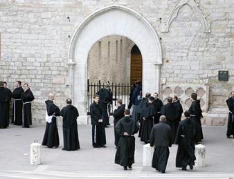 L'intera fraternità ringrazia il Signore e il serafico Padre San Francesco per padre Mauro Gambetti e si stringe attorno a lui per questa ulteriore navigazione nei mari di Dio. E' l'uomo la principale strada della Chiesa che questa comunità vuole amare e servire. La fraternità conventuale è composta da 80 frati e 30 tra chierici e novizi. Le nazioni rappresentate sono 21. Tra le presenze più forti quella cinese.