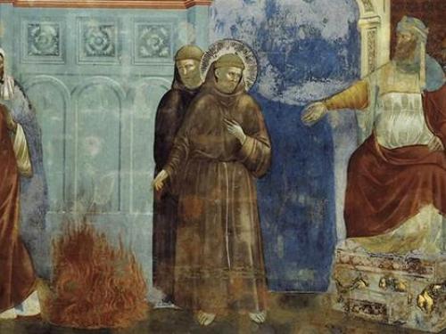 Il 24 luglio 1219, San Francesco d'Assisi intraprese la prima delle sue numerose azioni coraggiose. Nel mezzo delle Crociate, parti con i suoi compagni per la Palestina, poi raggiunse Damietta, in Egitto. Lì ammonì i Crociati che assediavano la città da più di un anno; seguendo la via della morte e della distruzione si allontanavano sempre più dalla via di Dio. San Francesco predicò che alla fine, sarebbero stati sconfitti e scacciati dall'Egitto ed ebbe ragione.